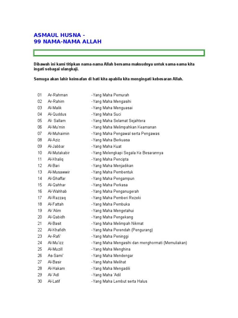 mattop's blog: Amalan Zikir Asmaul Husna (99 Nama-nama Allah) from 3.bp.blogspot.com Maybe you would like to learn more about one of these? We did not find results for: Check spelling or type a new query.